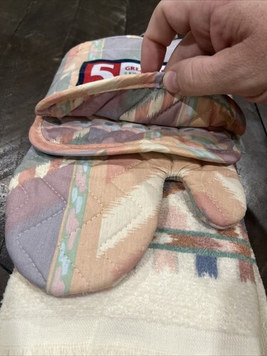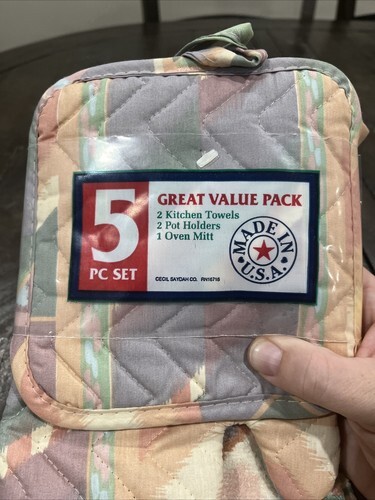 - Vtg Cecil Saydah Aztec Sierra Kitchen Towels Oven Mitt Potholders 5 Piece Set