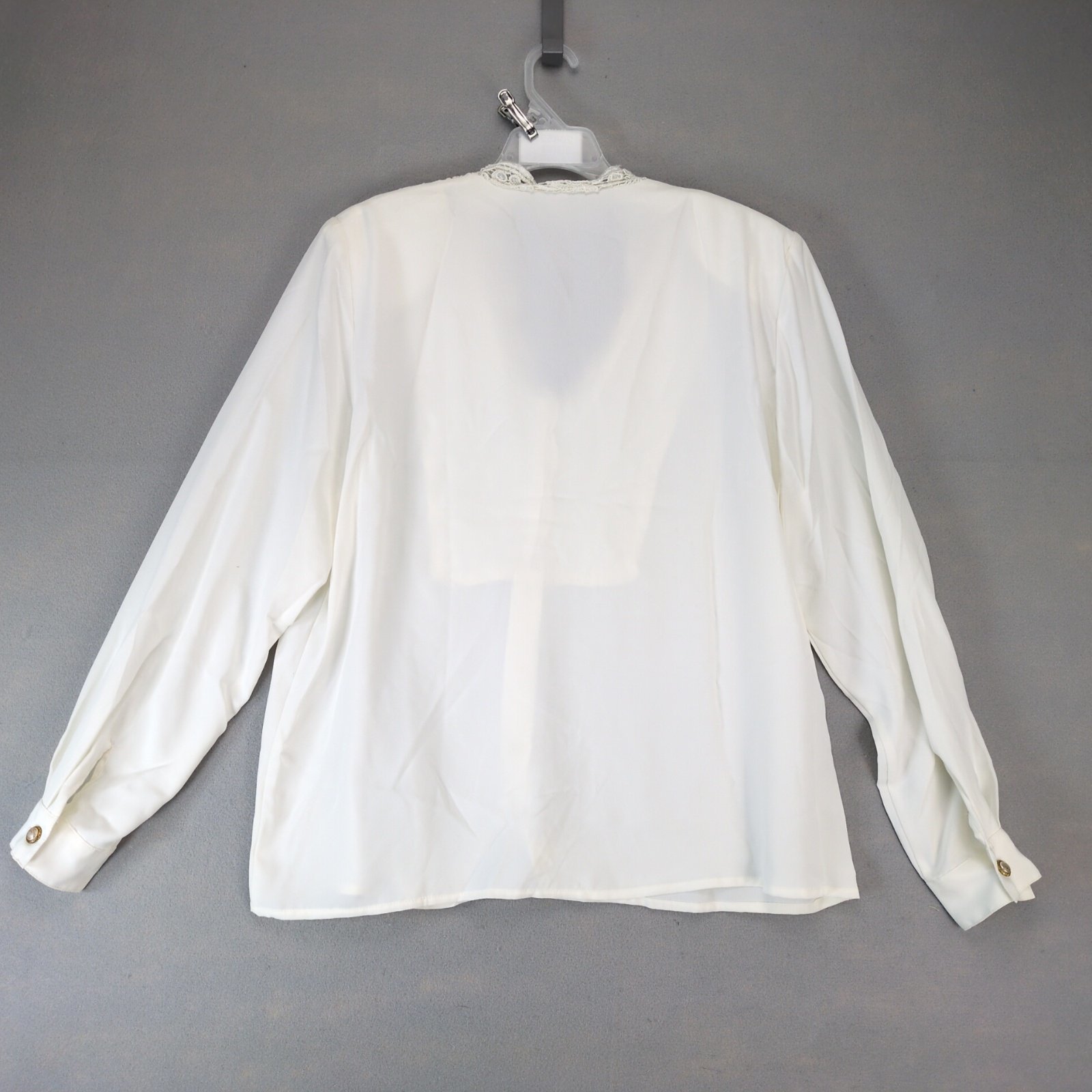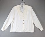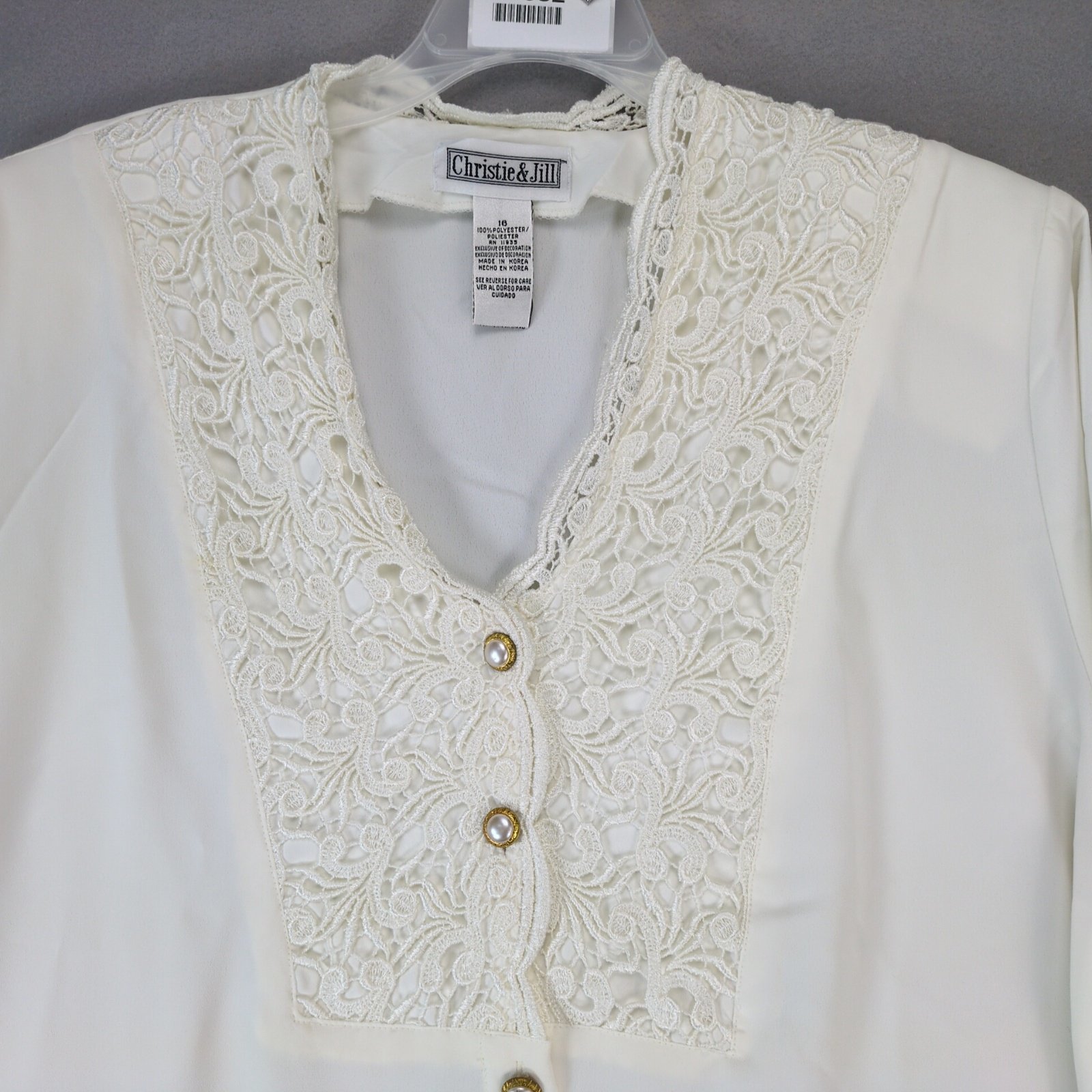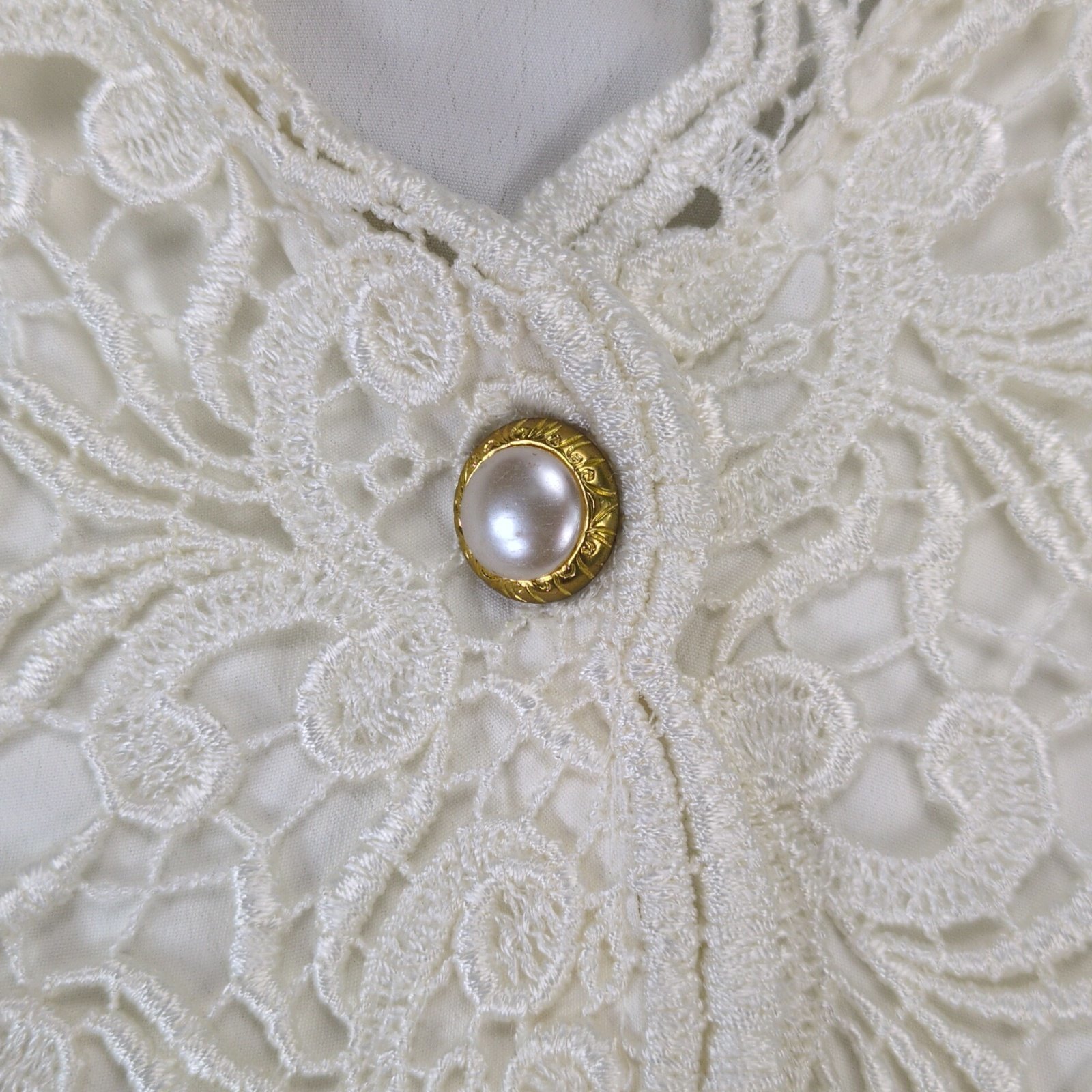 - Vtg Christie & Jill Ivory Crochet Lace Blouse Women's 18 Gold Pearl Buttons V-Nk