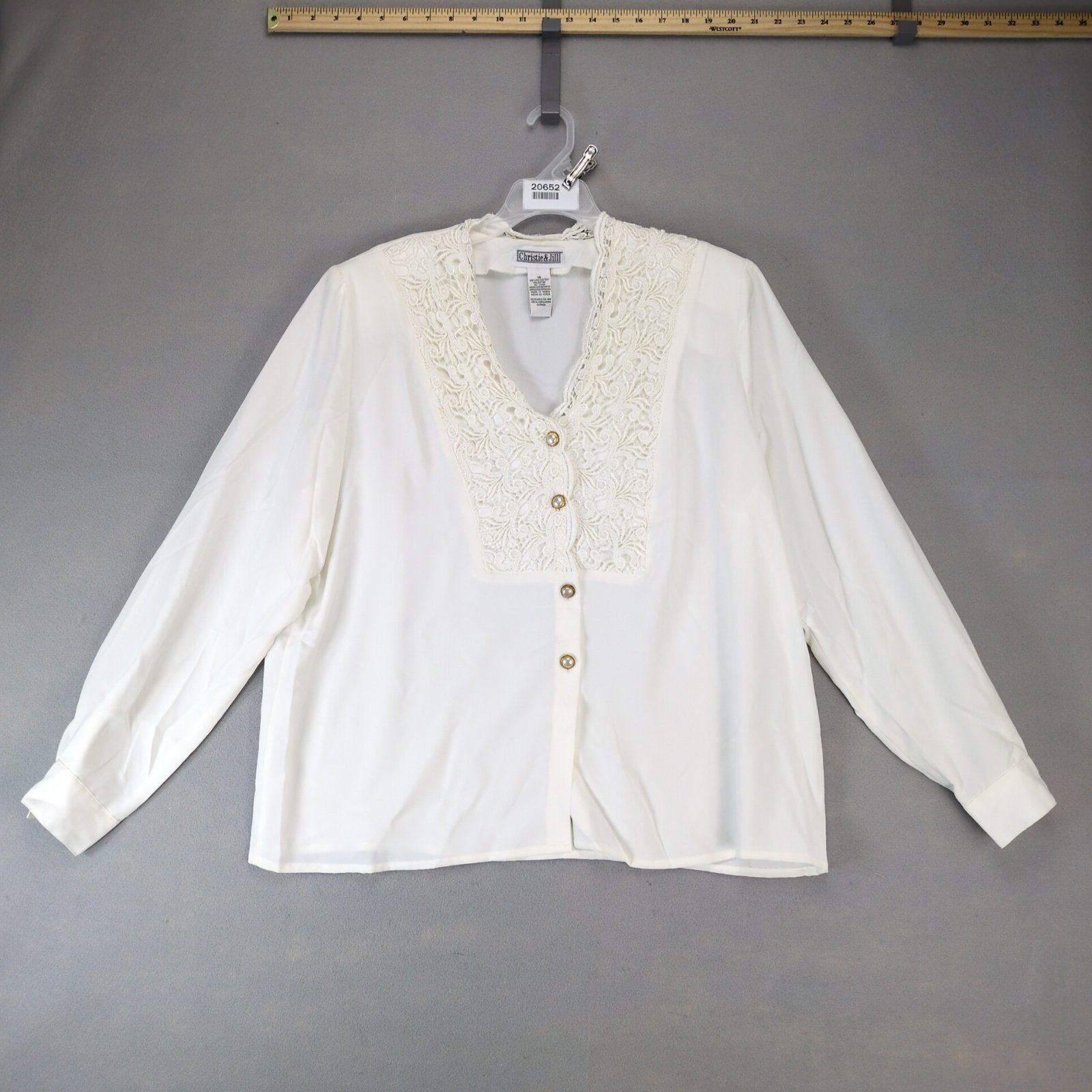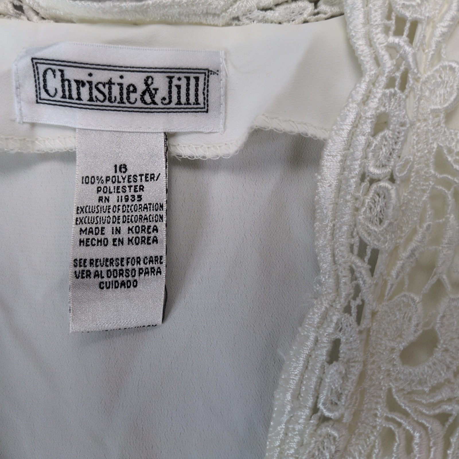 Vtg Christie & Jill Ivory Crochet Lace Blouse Women's 18 Gold Pearl Buttons V-Nk