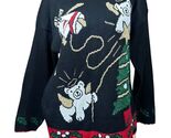 Vtg Christmas Sweater Angel Polar Bears Tree Black Soft JJ Poole Not Ugly Size L