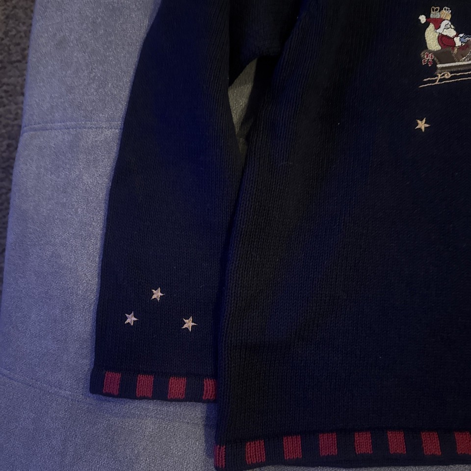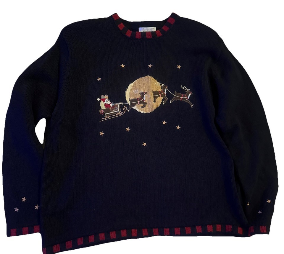 - Vtg Christopher & Banks Xlrg Blue Hand Embroidered Christmas Santa & Reindeers
