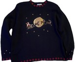 Vtg Christopher & Banks Xlrg Blue Hand Embroidered Christmas Santa & Reindeers