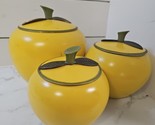 - Vtg Chrom-Ever 1950-60s Yellow Apple Canister Cookie Jar Aluminum Set 3