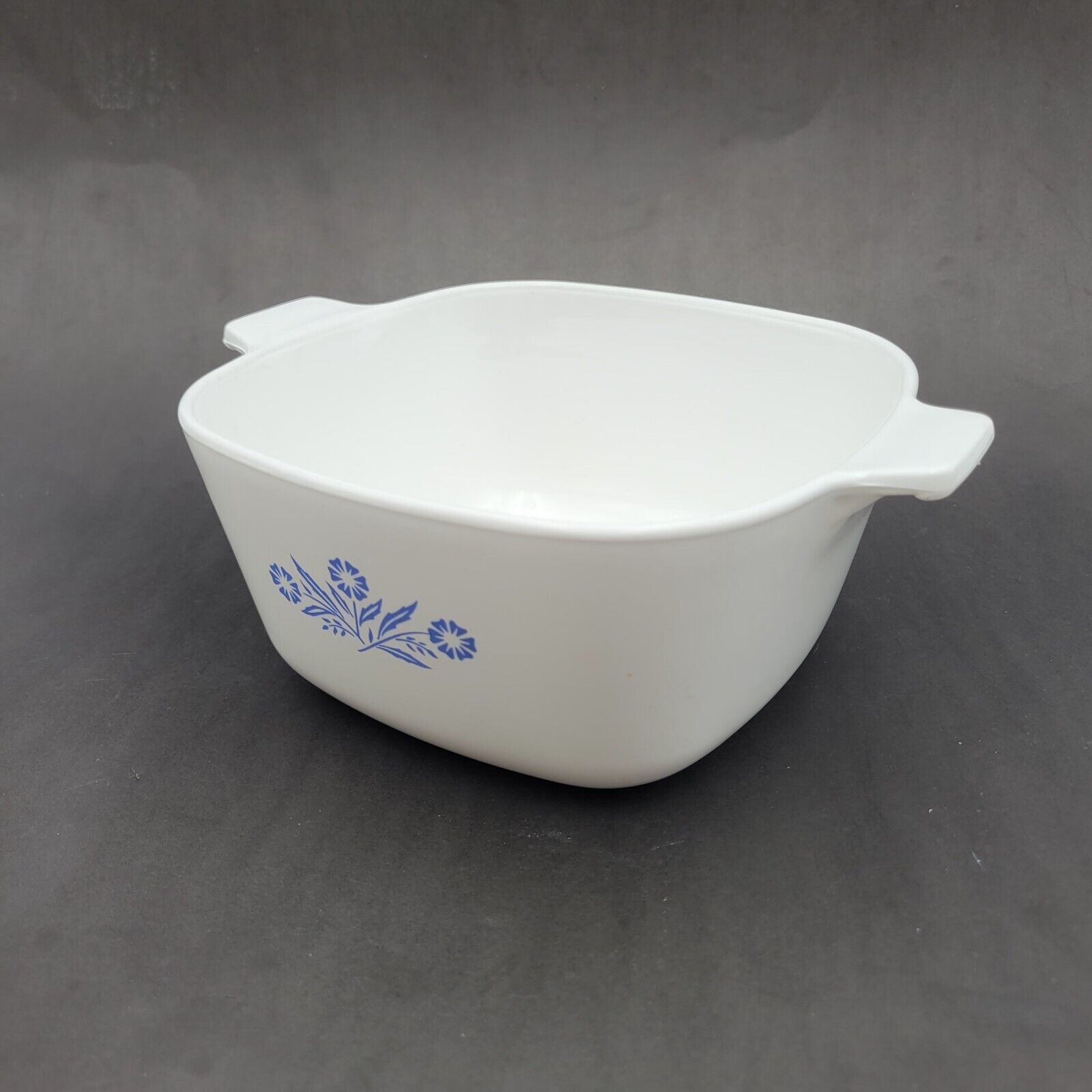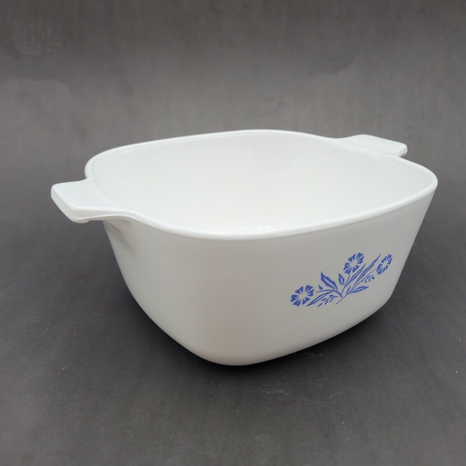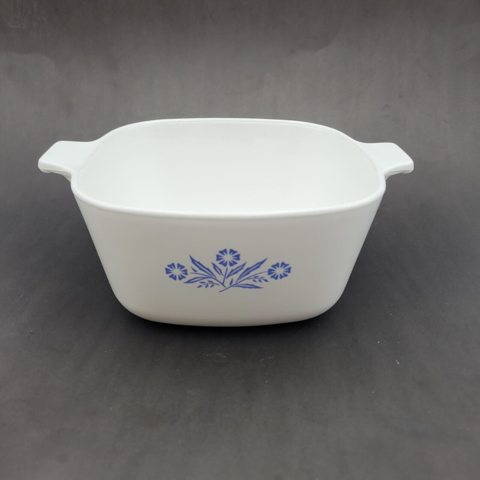 This vintage Corning Ware P-1 casserole dish is a classic addition to any kitchen. The blue cornflower pattern adds a touch of whimsy to your dining table. With a capacity of 1 3/4 quarts, this square dish is perfect for serving up your favorite dishes.