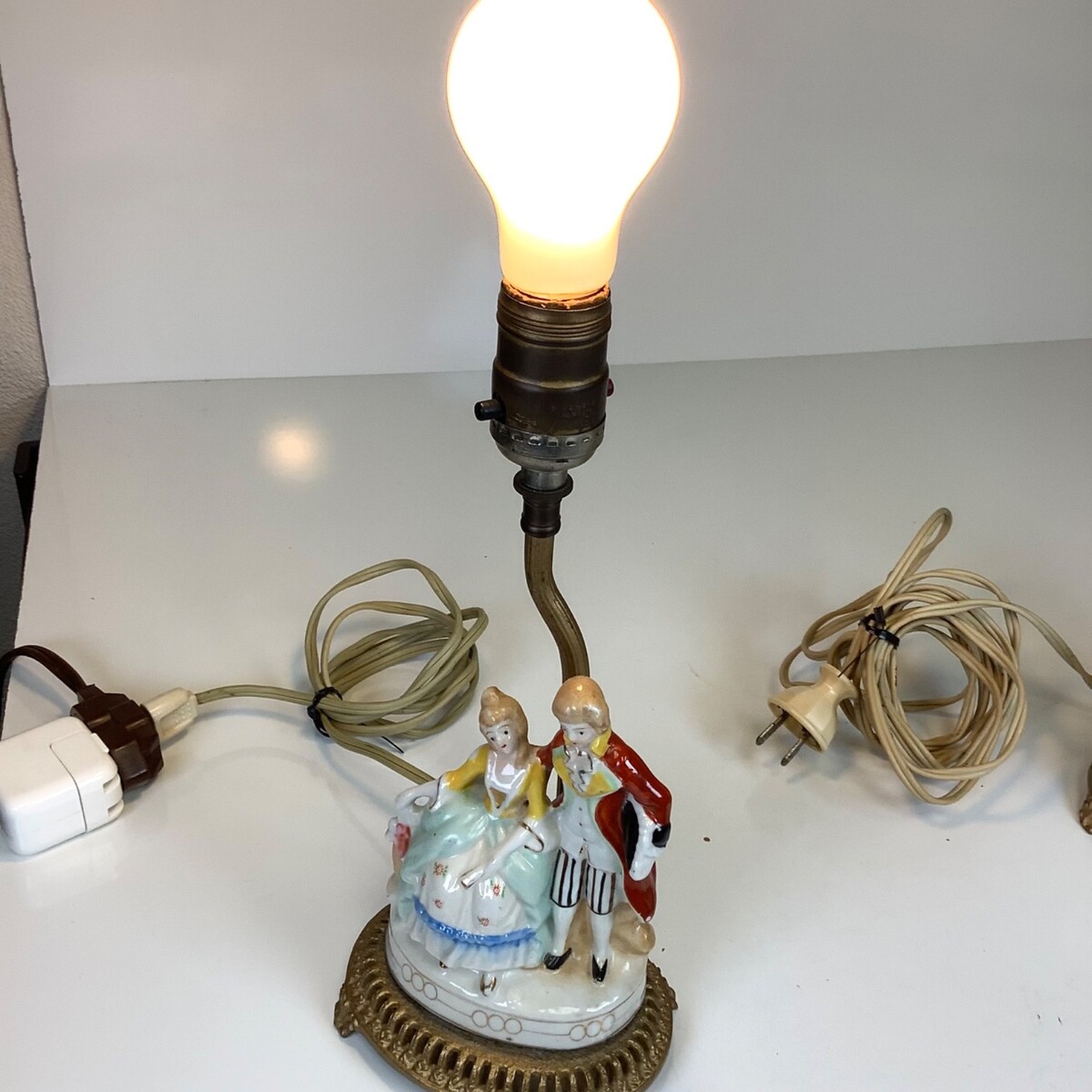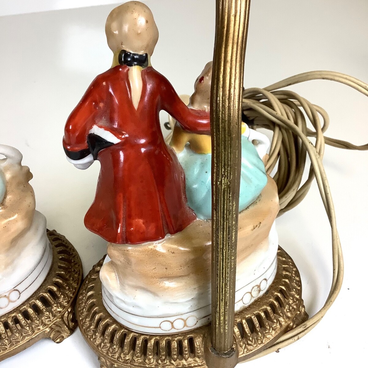 - Vtg Courting Couple Figural Porcelain Lamps Boudoir Desk Victorian Set of 2
