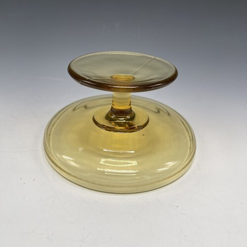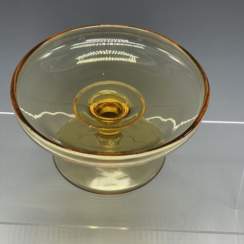- Vtg Depression Glass Round Pedestal Candle Holder Or Cheese Dish Amber Yellow
