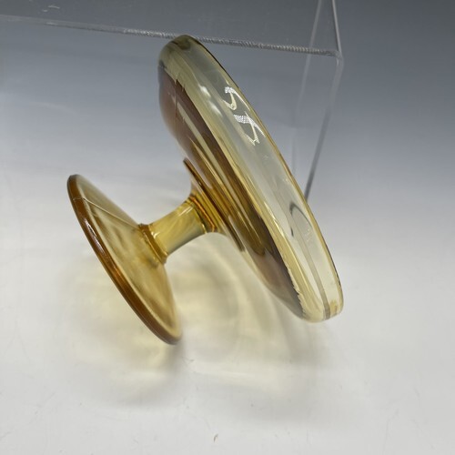 Vtg Depression Glass Round Pedestal Candle Holder Or Cheese Dish Amber Yellow