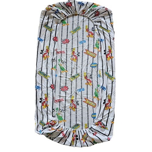 Vintage Disney Dundee Mickey Mouse Crib Sheet Striped Car Racing Fitted USA