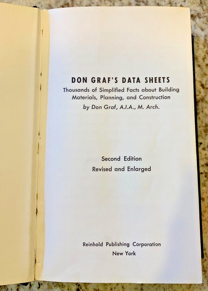 The item is a Vintage hardcover book titled "Don Graf's Data Sheets;" published in 1949 by Reinhold Pub. Corp.