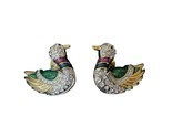 - Vtg Earrings Mallard Duck Bird Jadeite Rhinestones Clip Back 1 3/8"