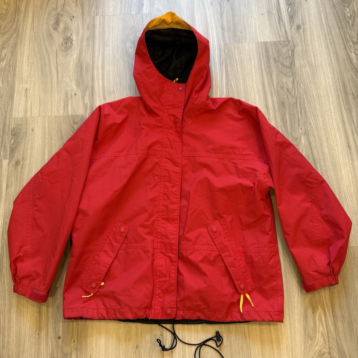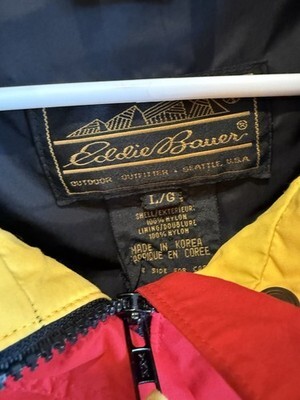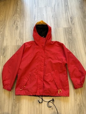 - Vtg Eddie Bauer L Goretex Shell Hooded Windbreaker Red Waterproof Camping Read
