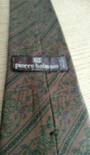 - VTG EUC PIERRE BALMAIN Brown Green Handmade Paisley Silk Neck Tie