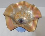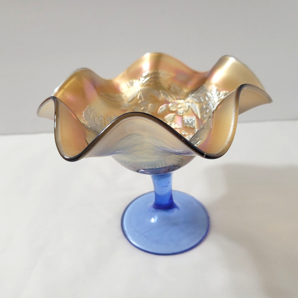 - Vtg Fenton Carnival Glass Compote Candy Dish Peacock Urn Marigold Blue 5.25"