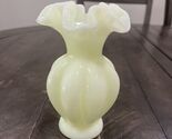 Vtg Fenton Glossy Green Custard Glass Melon Vase Ruffled Vaseline Glass Glows