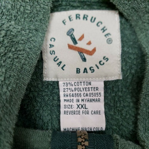 - Vtg Ferruche French Terry Pullover Mens XXL Green Cotton Blend 1/4 Zip Sweater