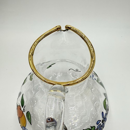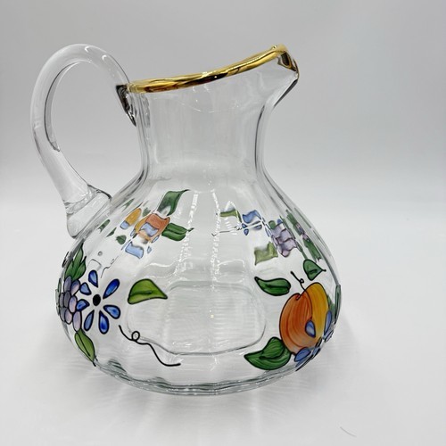 - Vtg. Fifth Ave Crystal Ltd. Romanian Glass Hand Painted Pitcher 22k Gold Large