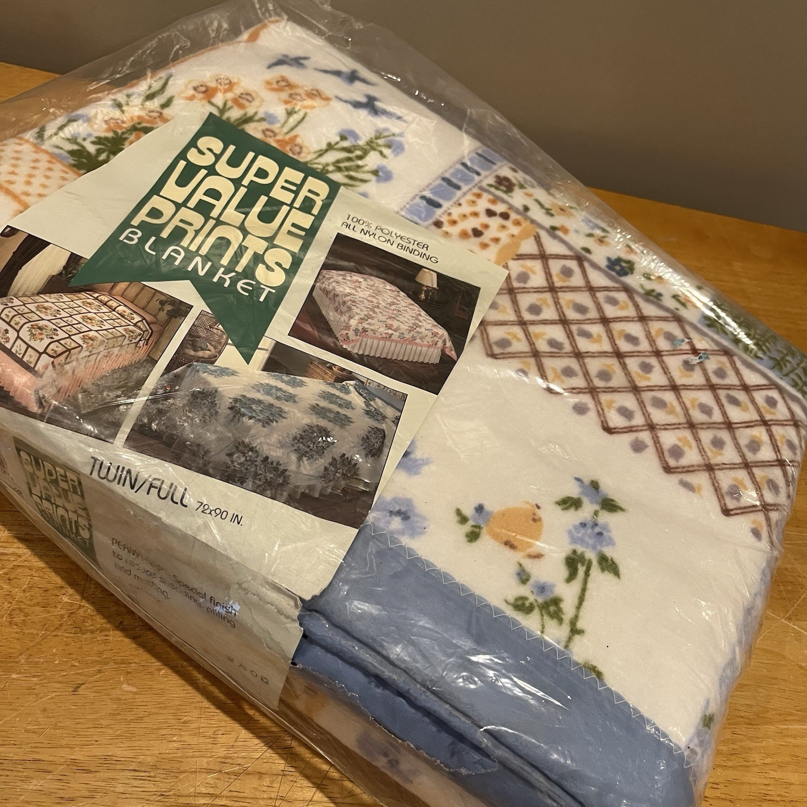 This Vintage Floral Blue Butterfly Bird Satin Trim Blanket is a charming addition to any home, with its mid-century patchwork design featuring butterflies, birds, and flowers. Made from a soft blend of polyester and nylon, this full-size blanket is perfect for cozying up on the couch or adding a touch of feminine, cottagecore style to a nursery or girl's room. The vintage pattern and pastel colors give it a nostalgic, girly feel that will complement a variety of decor styles, from 50s to 70s. Made in the USA, this unique blanket is a must-have for collectors and lovers of retro design.