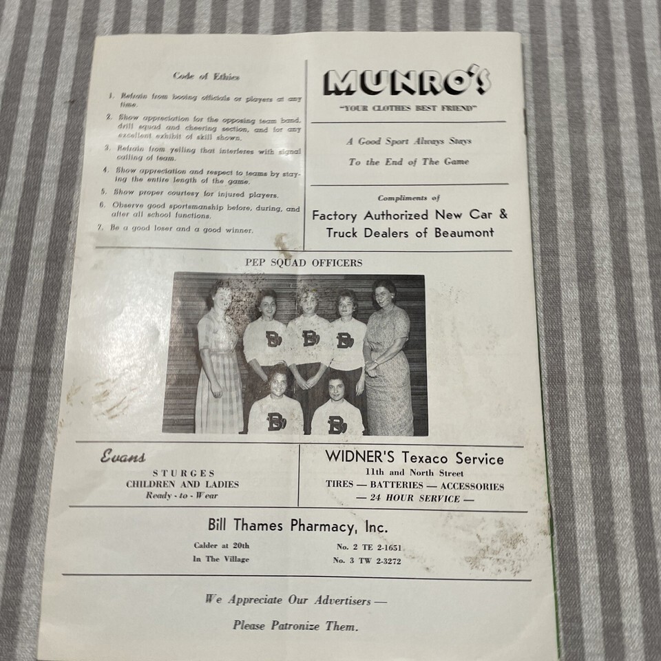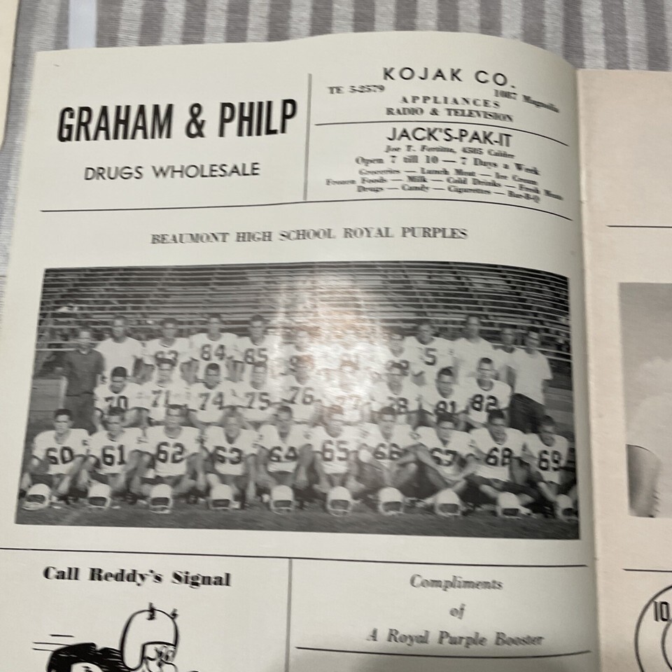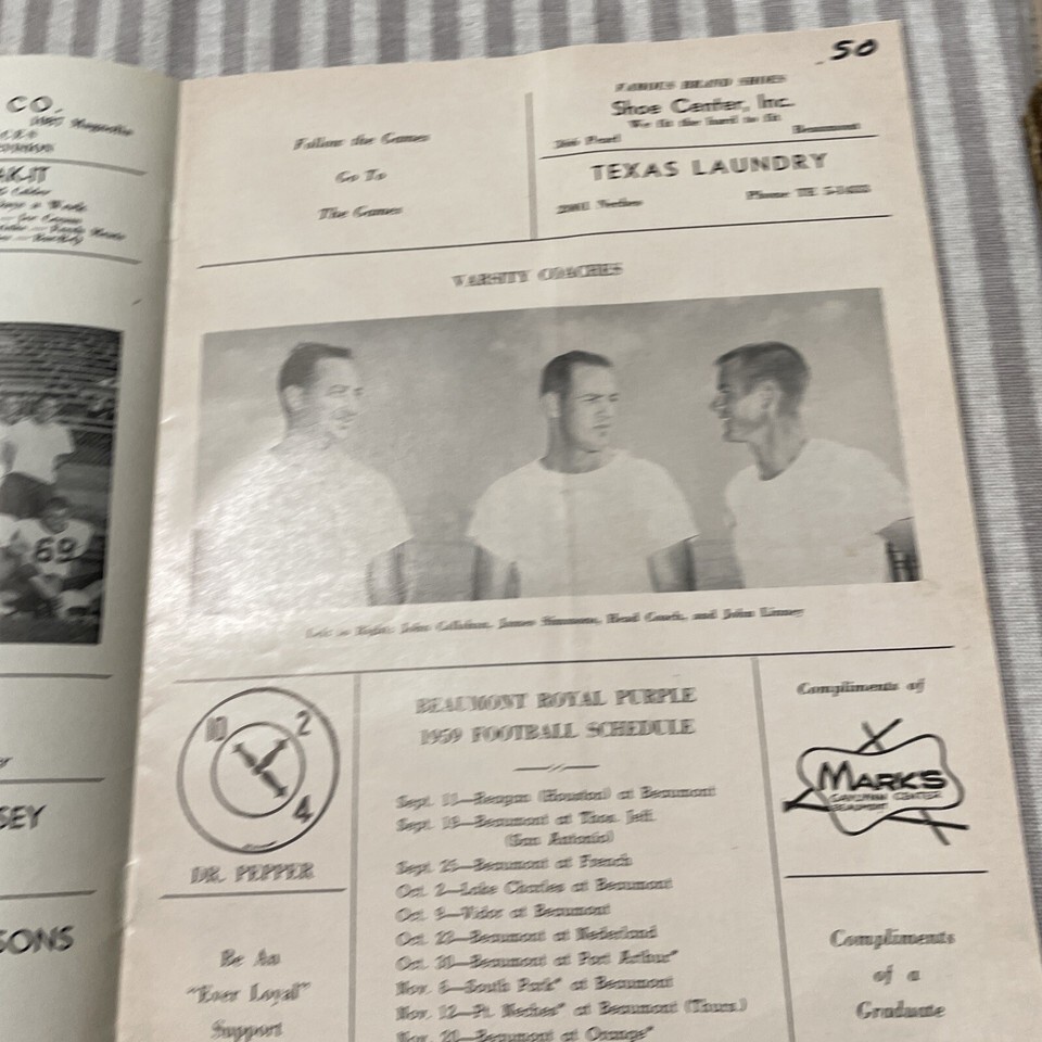 Vtg Football Program Beaumont TX 1959 high school Royal Purples South Park