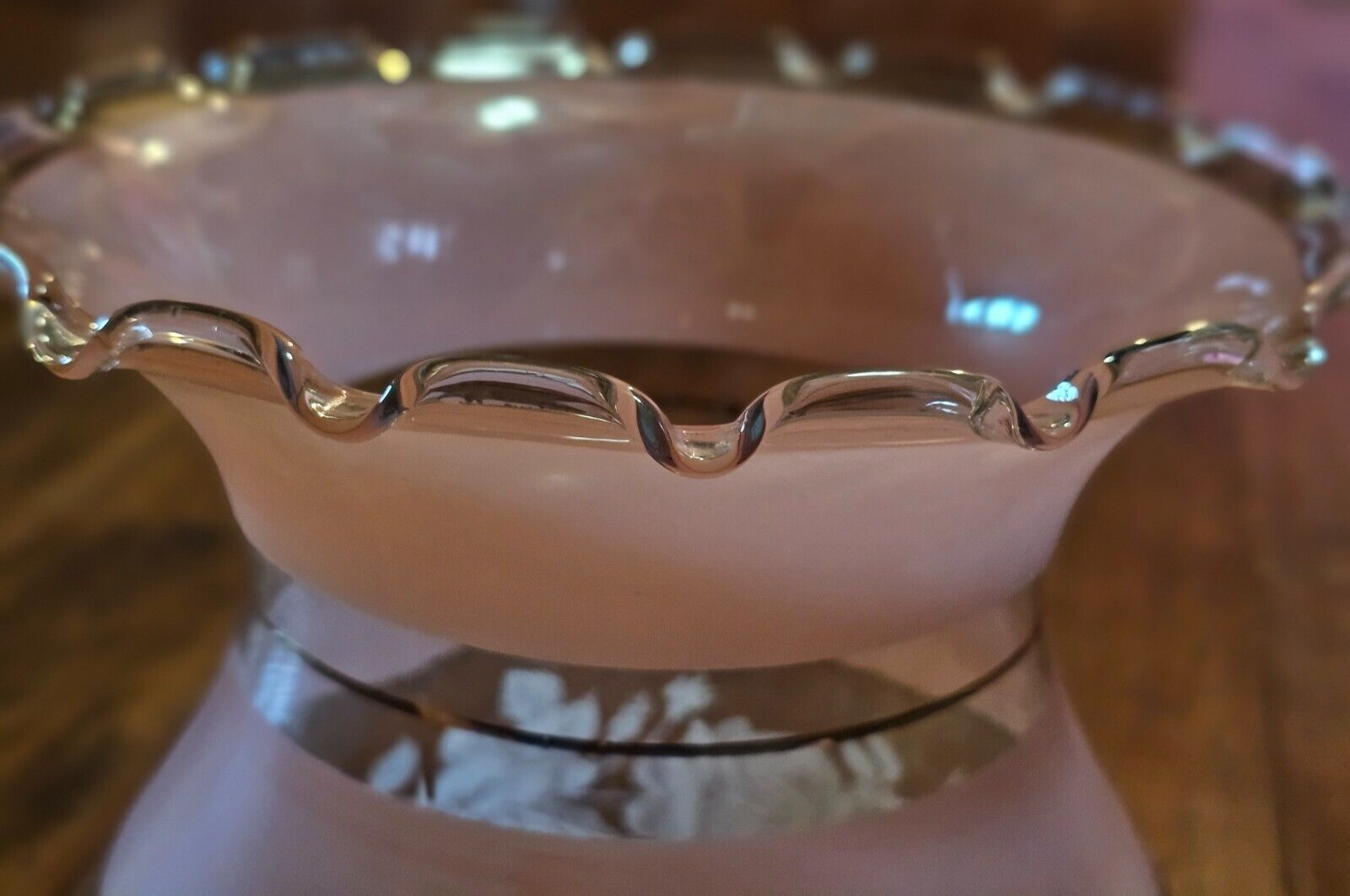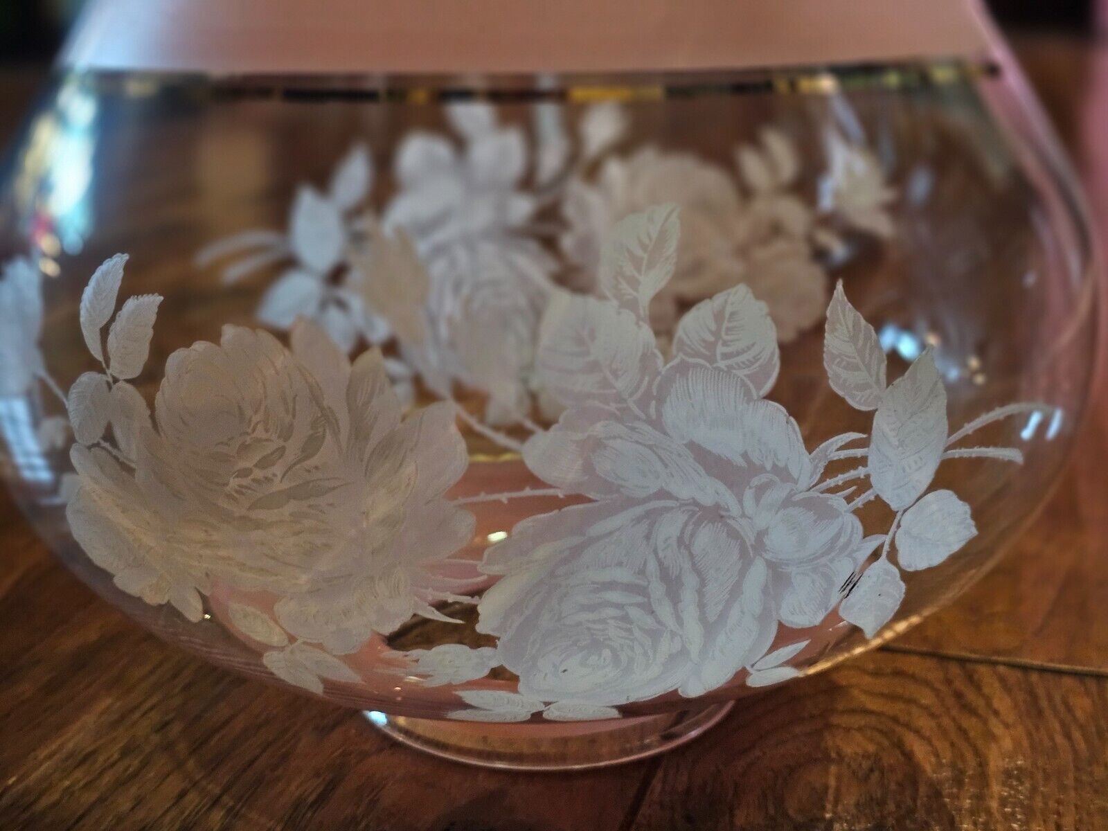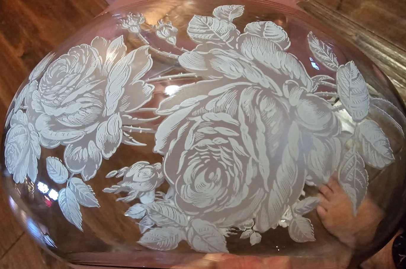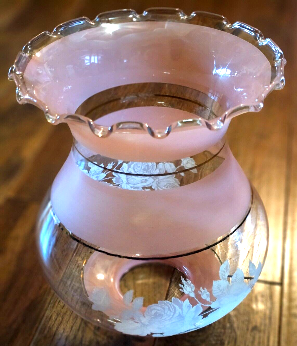 - Vtg Gone With The Wind Glass Lampshade W/Roses light Pink White Gold