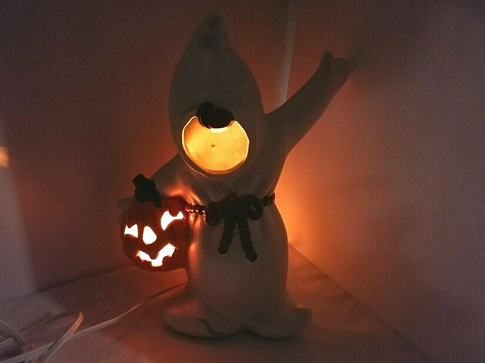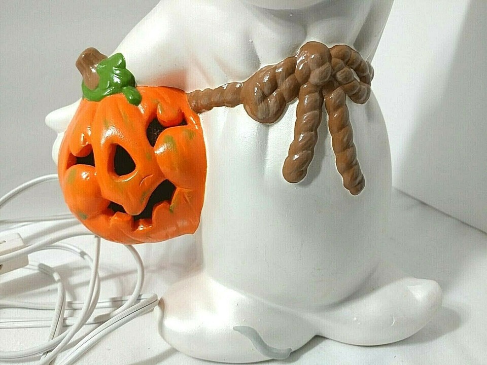 - Vtg Halloween Ceramic Ghost Holding Pumpkin 11" Headless Horseman + light/cord