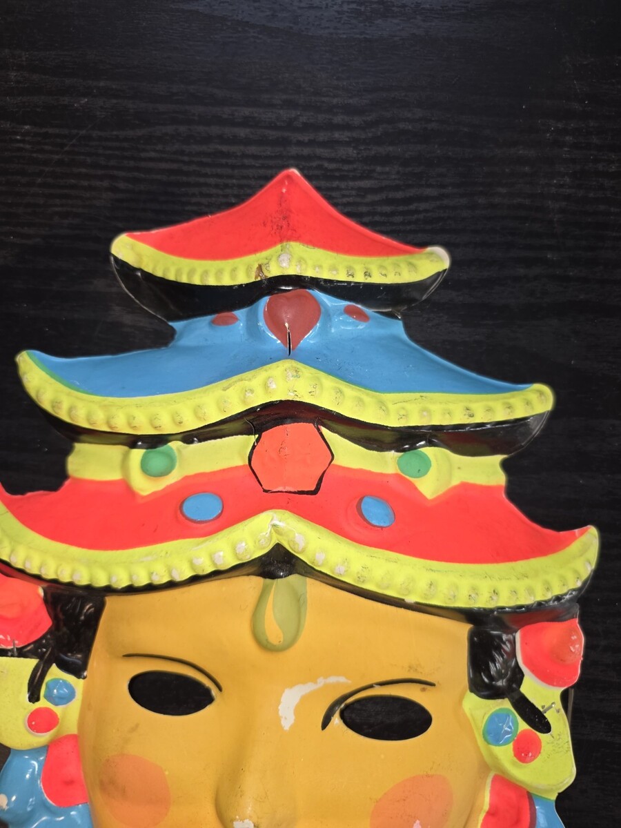 - Vtg Halloween Plastic mask Ben Cooper Asian Princess Fluorescent Pagoda Neon