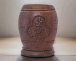 - Vtg Hand Carved Wood Vessel Floral 70's 4" Walnut? Vase Pestle Cup Planter Decor