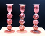 - Vtg Hand Made Bohemian Glass Cranberry & Swirl Candlesticks (3) Beautiful Red