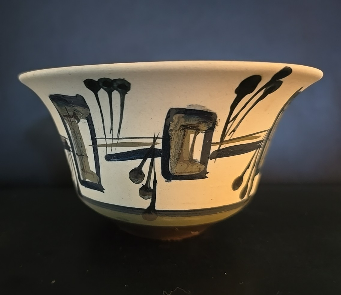 - Vtg Harsa Israel Pottery Bowl MCM Hand Painted Abstract Modernist Israeli Dish