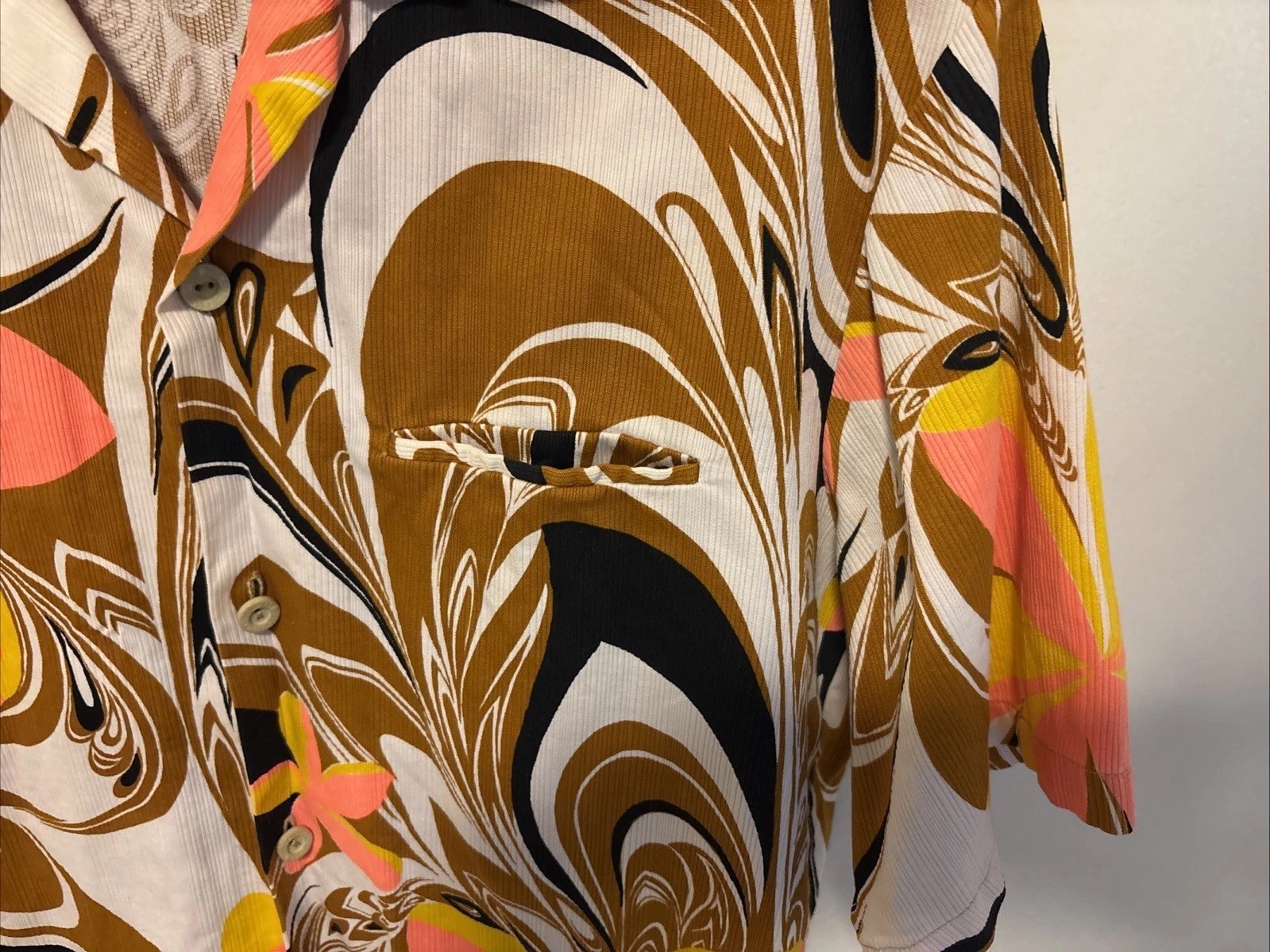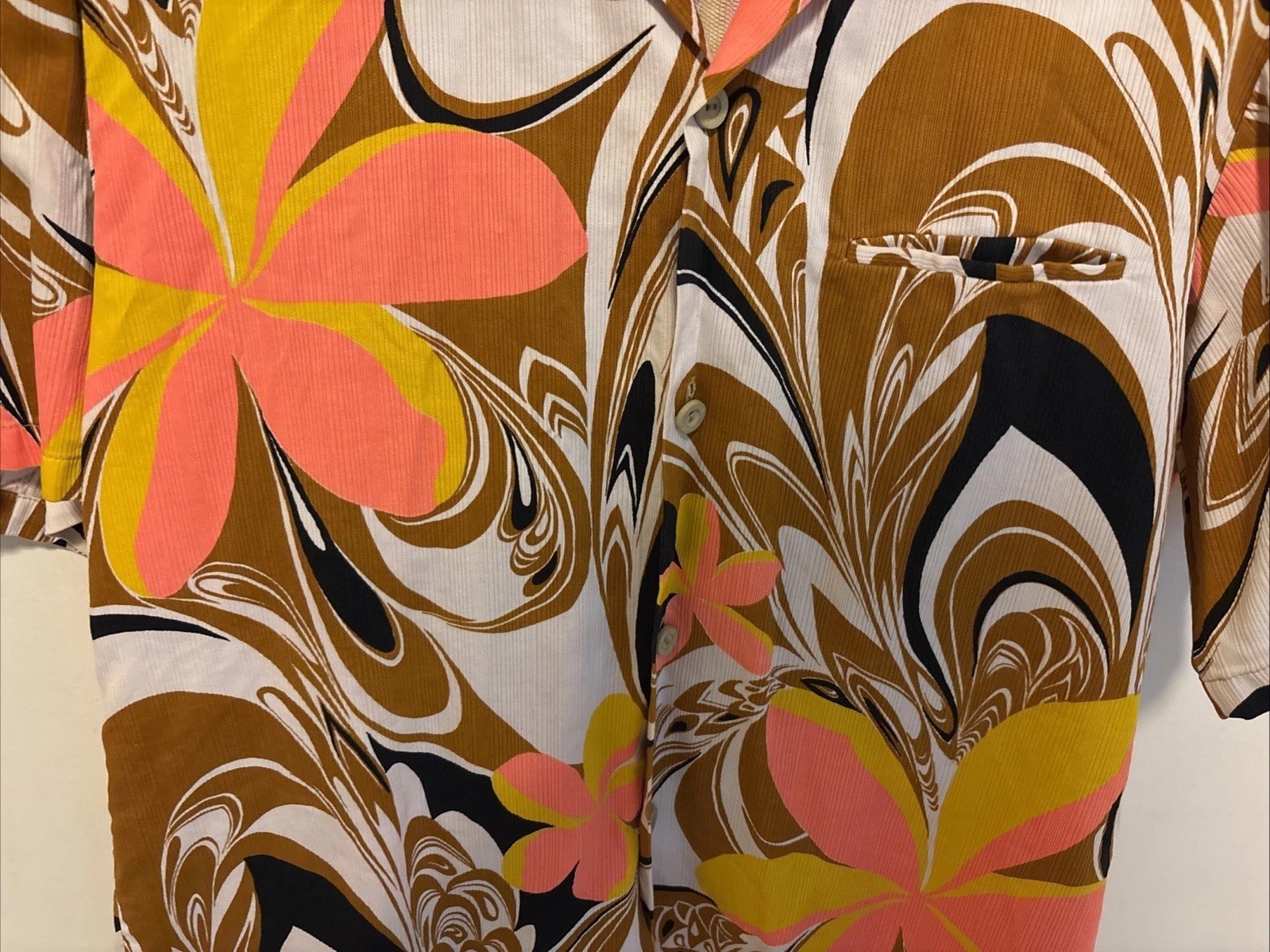 - Vtg Hawaii Liberty House Orange Yellow Brown Hawaiian shirt Sz Large