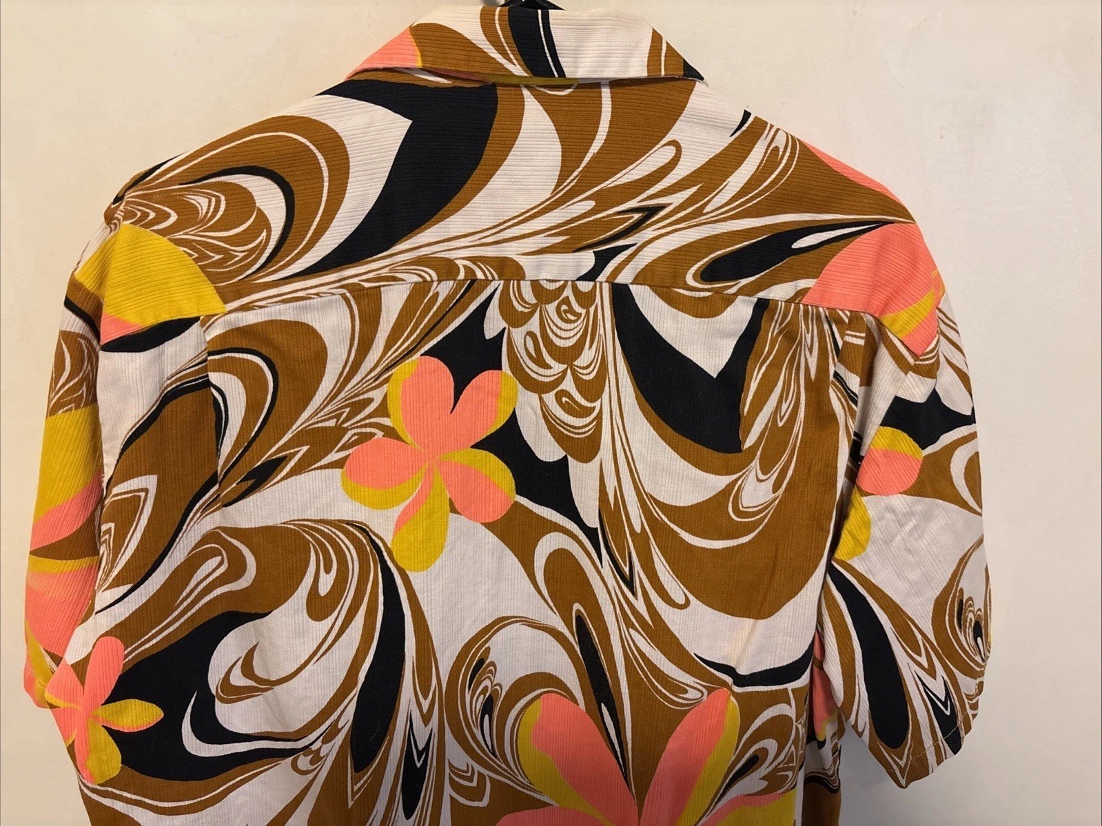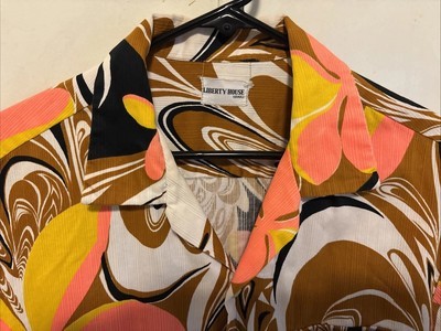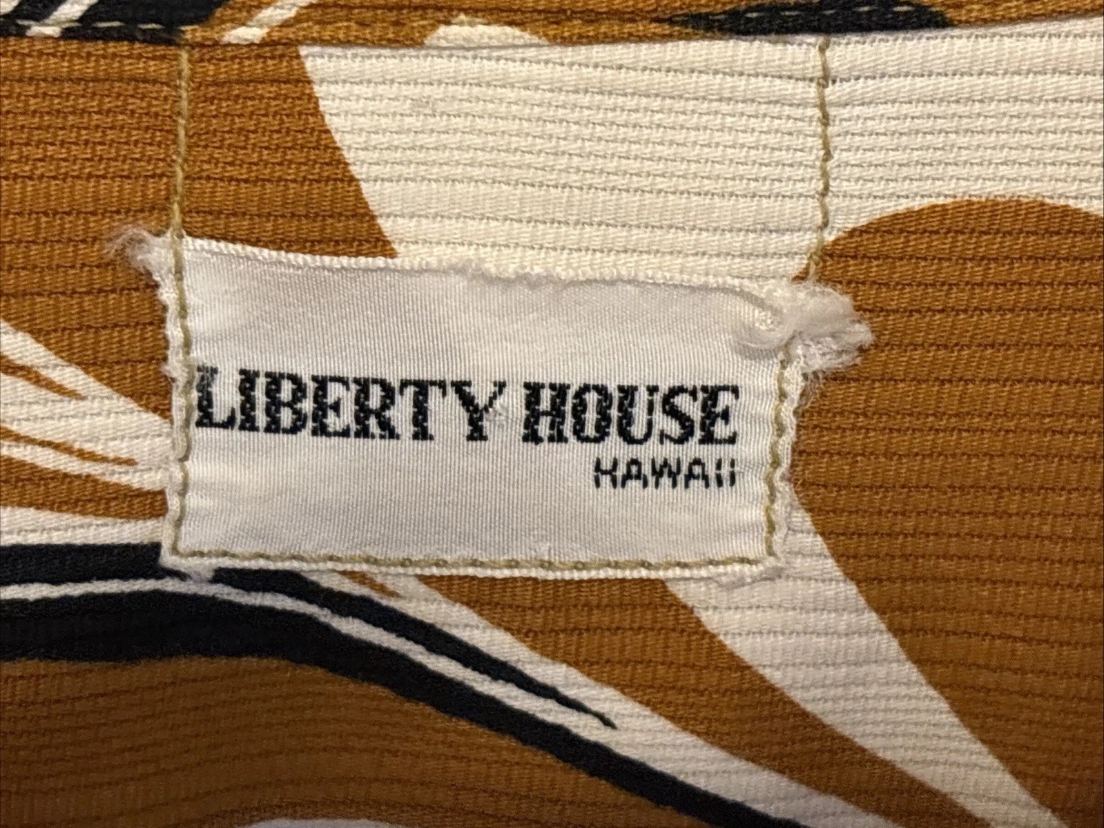 Vtg Hawaii Liberty House Orange Yellow Brown Hawaiian shirt Sz Large