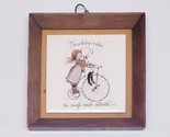 Vtg Holly Hobbie Wood Framed Tile Art "Friendship Makes The Rough Road Smooth "