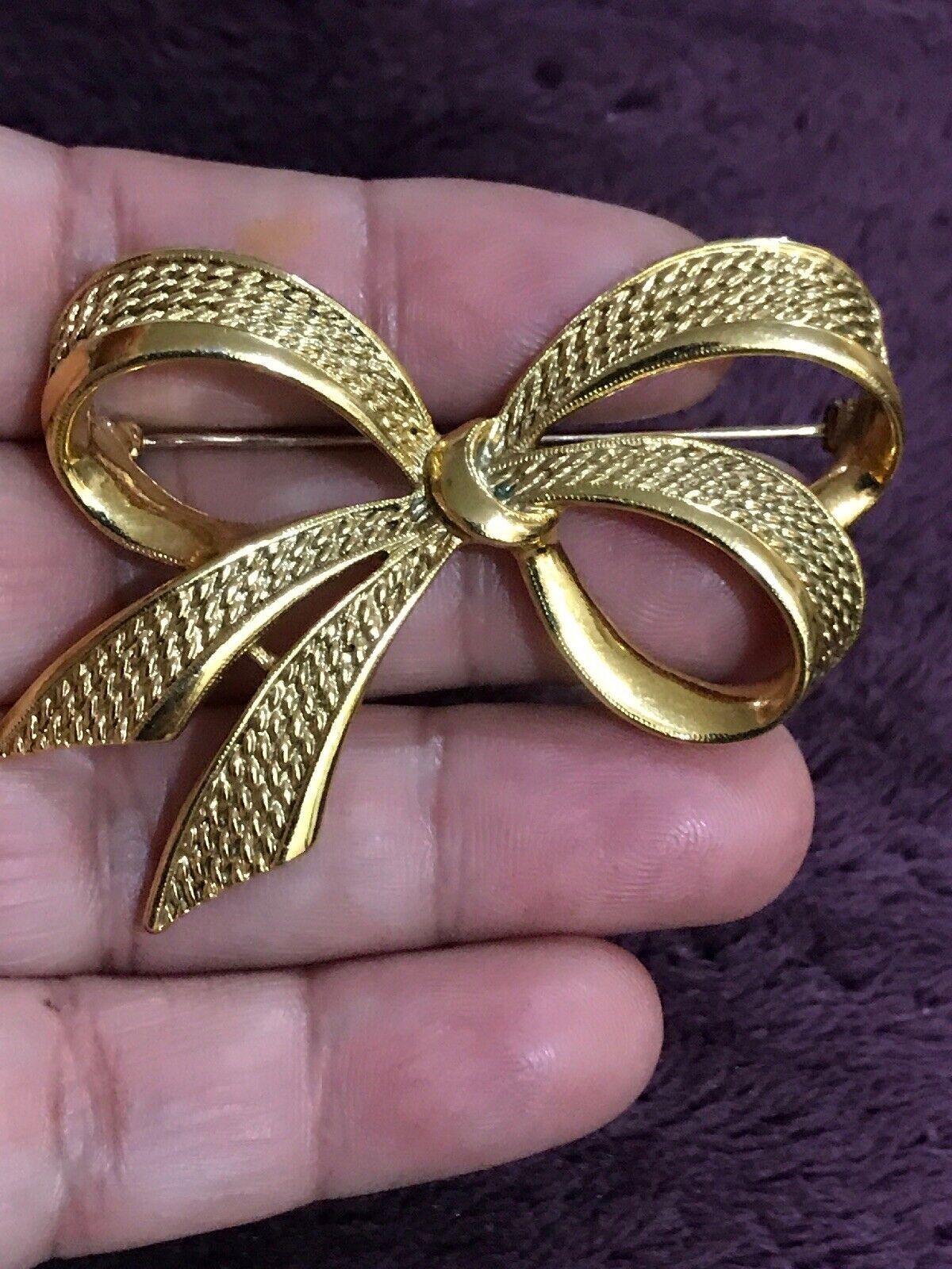 Vtg Huge Gold Ribbon Massive Pin Brooch Designers Runway -12. Shipped with USPS First Class Package.