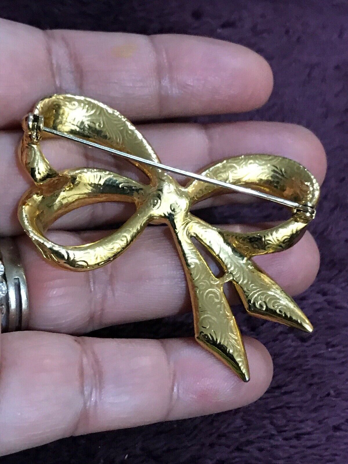 - Vtg Huge Gold Ribbon Massive Pin Brooch Designers Runway -12