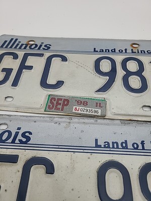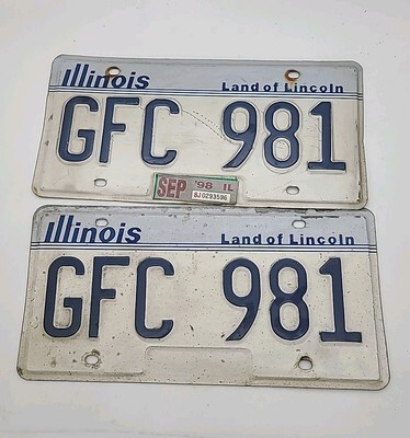 - Vtg ILLINOIS PLATE PAIR OF LICENSE PLATES Sept 1998 Garage Classic Decor 1990s