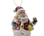 Vtg Iridescent Glazed Ceramic Santa with Presents Christmas Ornament