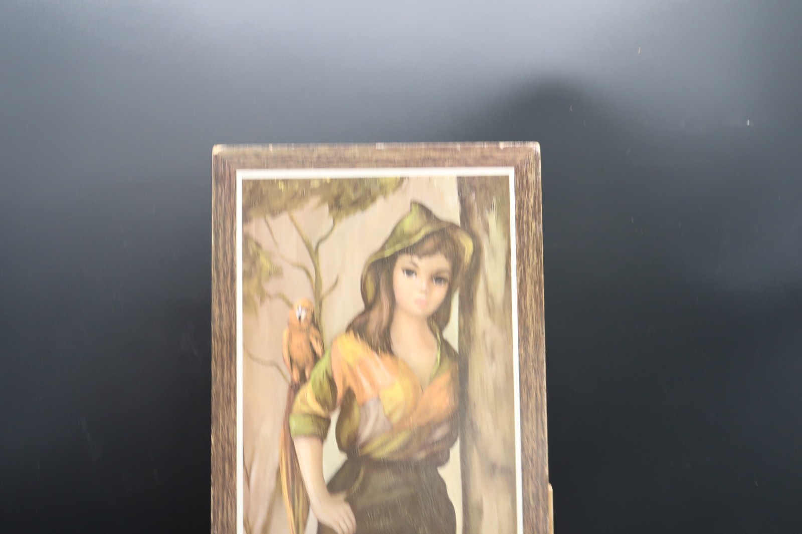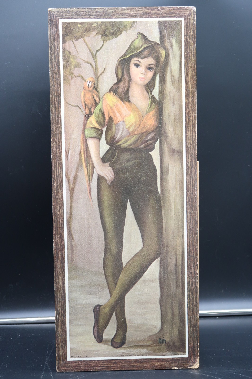 - Vtg Jean Maio Harlequin Parrot Woods Woman Girl Litho USA Soroka Sales A.A.K N.Y