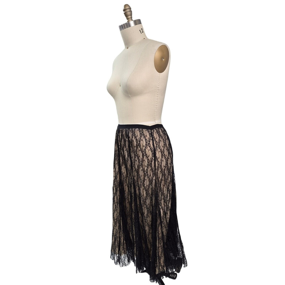 Vtg Laura Ashley Nylon/Polyester Black Lace Overlay Skirt Sz L
