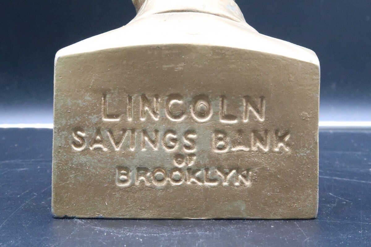 - Vtg Lincoln Savings Bank of Brooklyn Figural Still Bank NY No Key