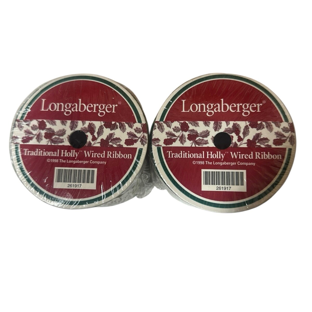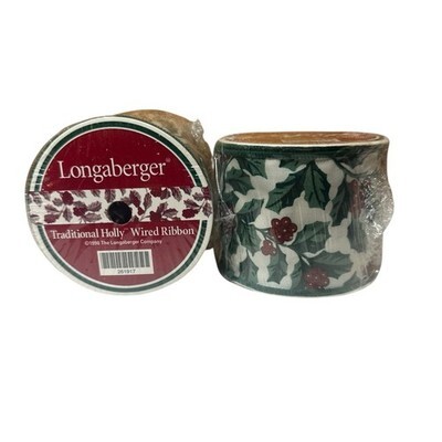 - Vtg Longaberger Traditional Holly Wired Ribbon 5 yds Each 2.5" Lot of 2 Rolls