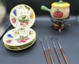 - Vtg MCM Pottery Fondue Set Divided Plates Hand painted Unique Set Of 4 Complete