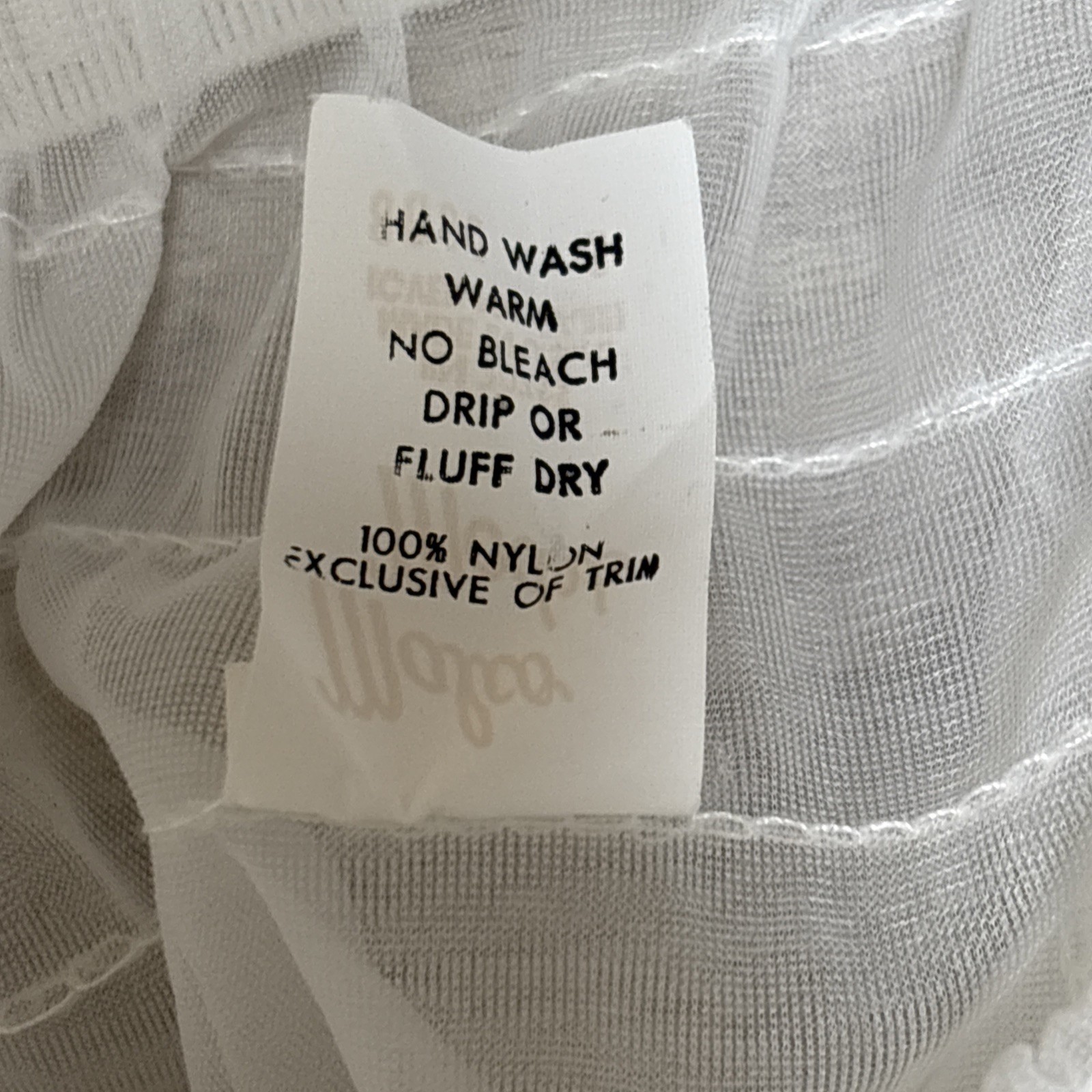 100% Nylon, Hand wash warm, fluff dry