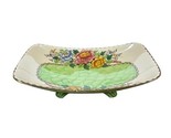 - Vtg Maling Rectangle Serving Dish Bowl Lustreware Peony Rose Footed Green Pink
