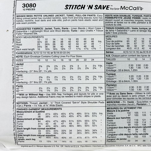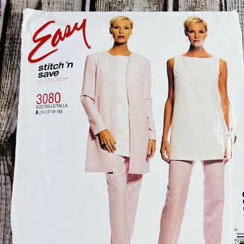- Vtg McCalls Pattern Stitch N Save Misses Unlined Jacket Tunic Pull On Pants 3080