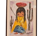 Vtg MCM LITTLE PAPAGO GIRL DeGrazia Art Print Laminated on Wood Wall Plaque