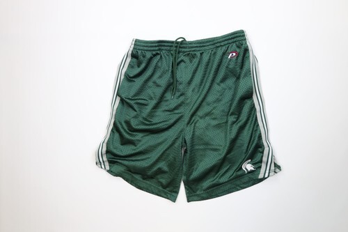 - Vtg Mens Large Striped Michigan State University Mesh Basketball Shorts Green