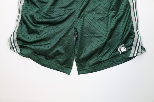 Vtg Mens Large Striped Michigan State University Mesh Basketball Shorts Green
