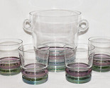 Vtg Mid Century Low Ball Glasses w Double Handled Ice Bucket 5pc Glass Bar Set