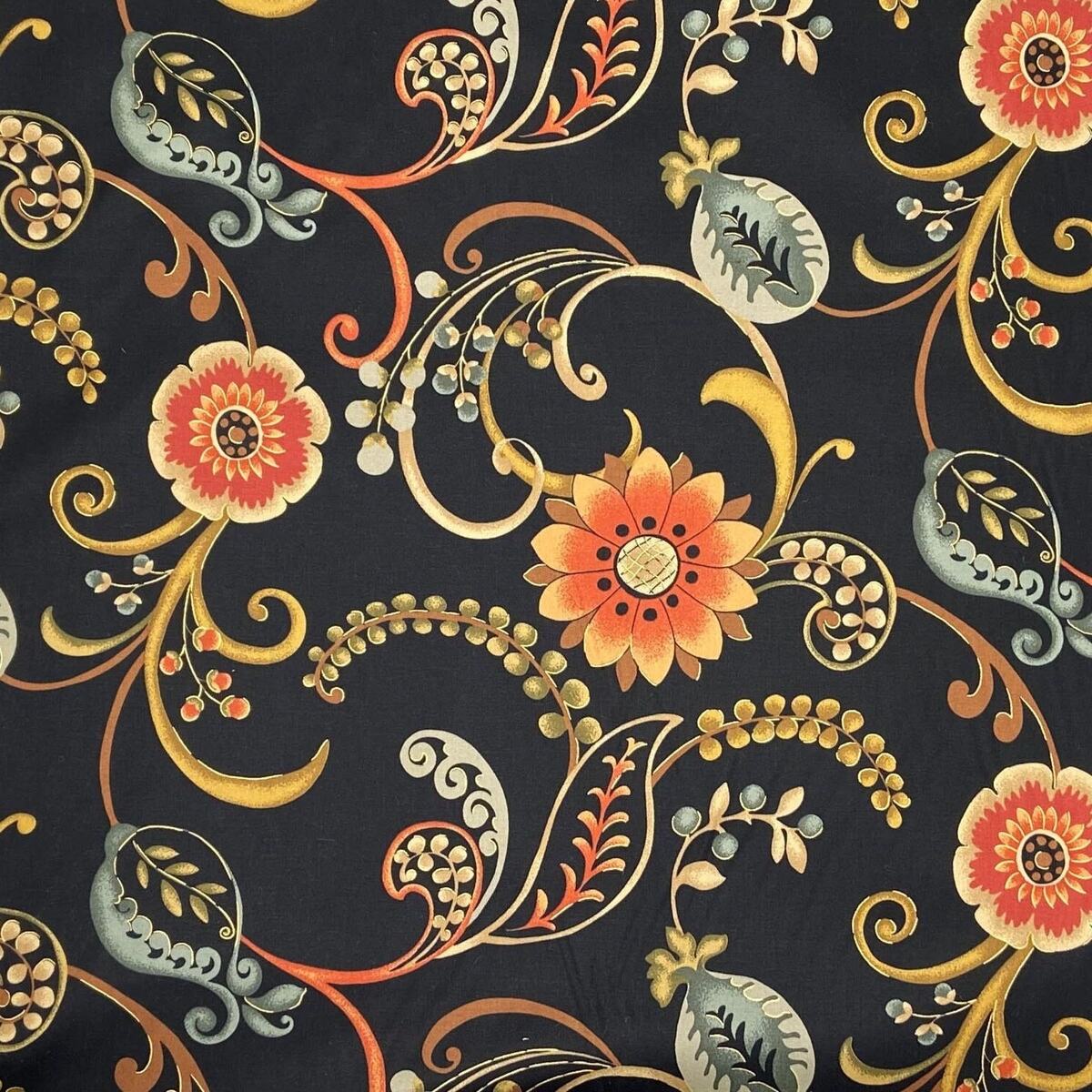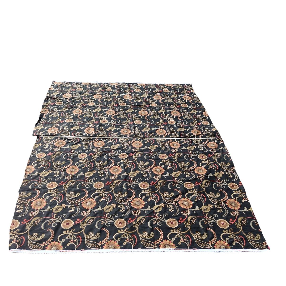 There are two pieces of fabric in this lot in the Floral Night Black screen-print pattern by Mill Creek Fabrics. They are a heavy cotton twill suitable for upholstery and other type projects (I had used them as a back drop for my antique booth).