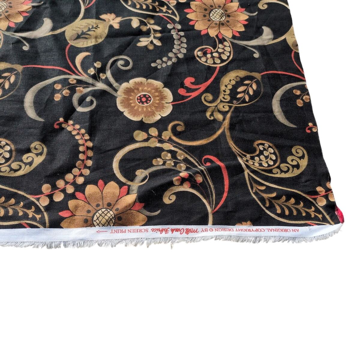 - Vtg Mill Creek Fabrics Floral Night Black Remnant Sewing Fabric 2pcs = 3.7yards