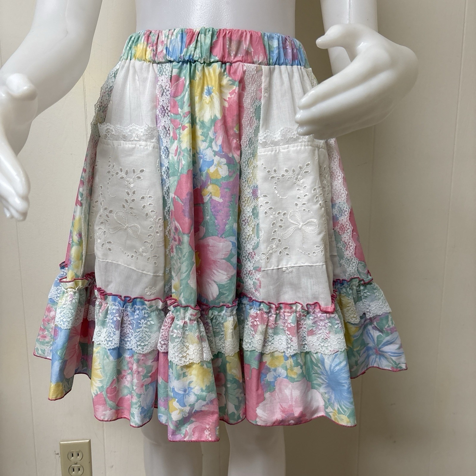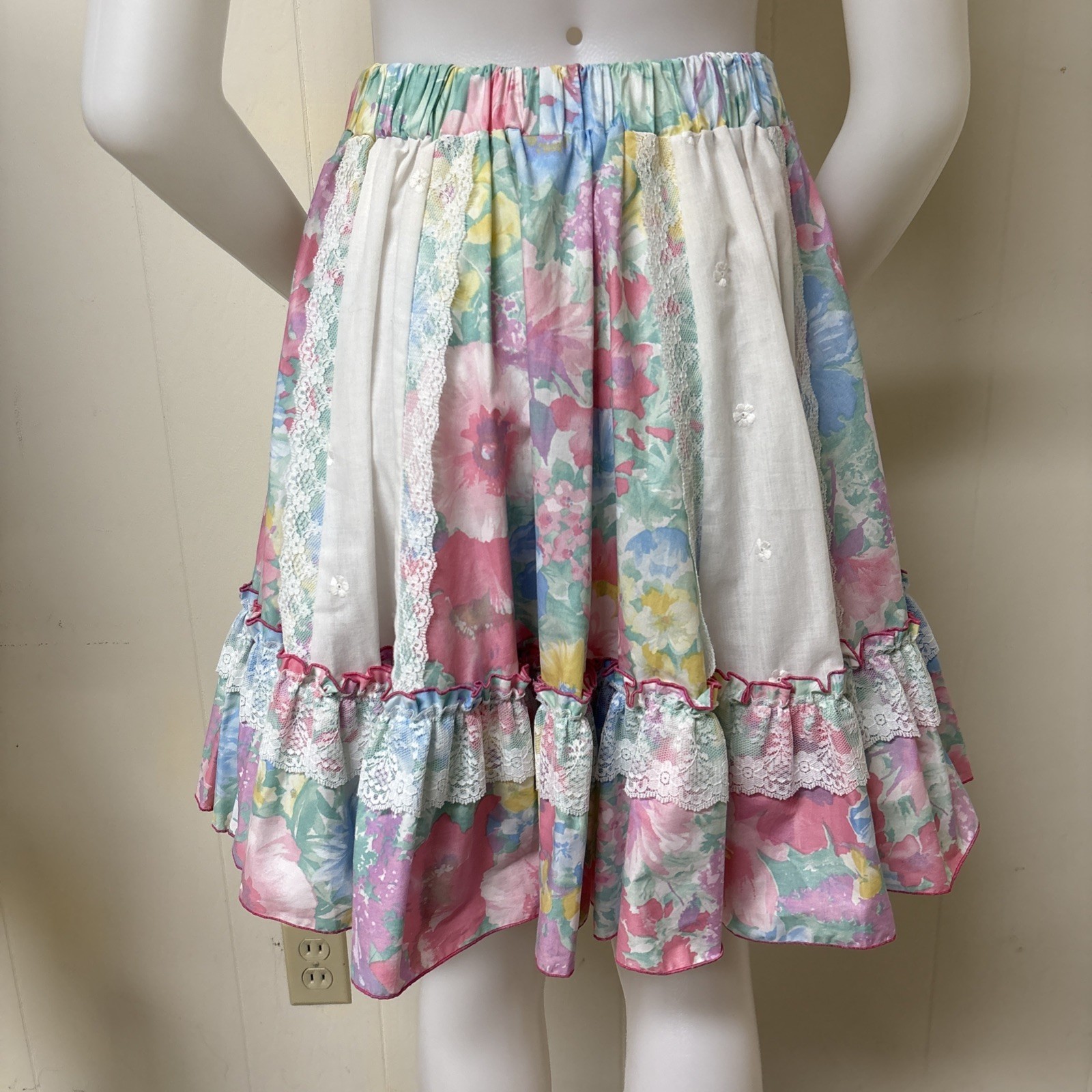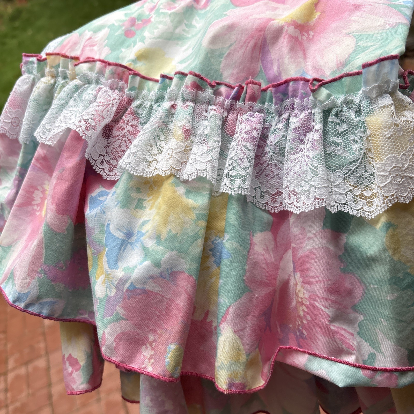 - Vtg Mondiki Square Dance Skirt Womens M Pastel Floral Ruffles Lace Rockabilly